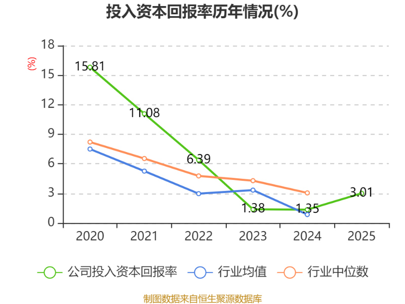 数据显示,2025年公司加权平均净资产收益率为4.31%,较上年同期上升2.01个百分点。公司2025年投入资本回报率为3.01%,较上年同期上升1.66个百分点。