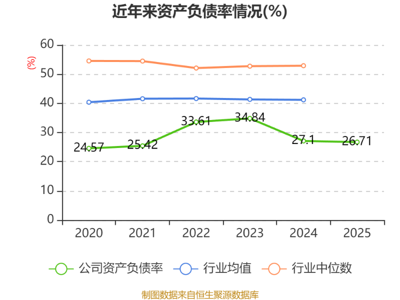 负债重大变化方面,截至2025年末,公司应付票据及应付账款较上年末减少21.32%,占公司总资产比重下降4.06个百分点;短期借款较上年末增加34.27%,占公司总资产比重上升1.07个百分点;合同负债较上年末增加100.43%,占公司总资产比重上升0.85个百分点;其他流动负债较上年末增加75.65%,占公司总资产比重上升0.79个百分点。