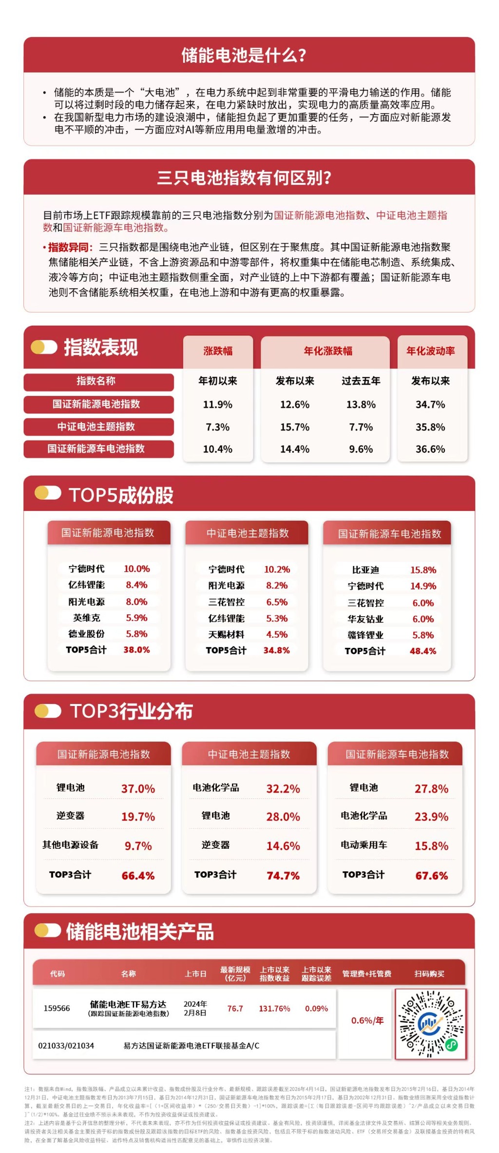 4月15日,新能源赛道震荡调整,光伏设备、锂矿、电池板块跌幅居前,截至收盘,国证新能源电池指数下跌2.2%。相关ETF受到资金关注,Wind数据显示,储能电池ETF易方达(159566,联接基金A/C:021033/021034)今日净申购超8000万份。Wind数据显示,该ETF此前已连续4个交易日获资金净流入,合计1.7亿元。
