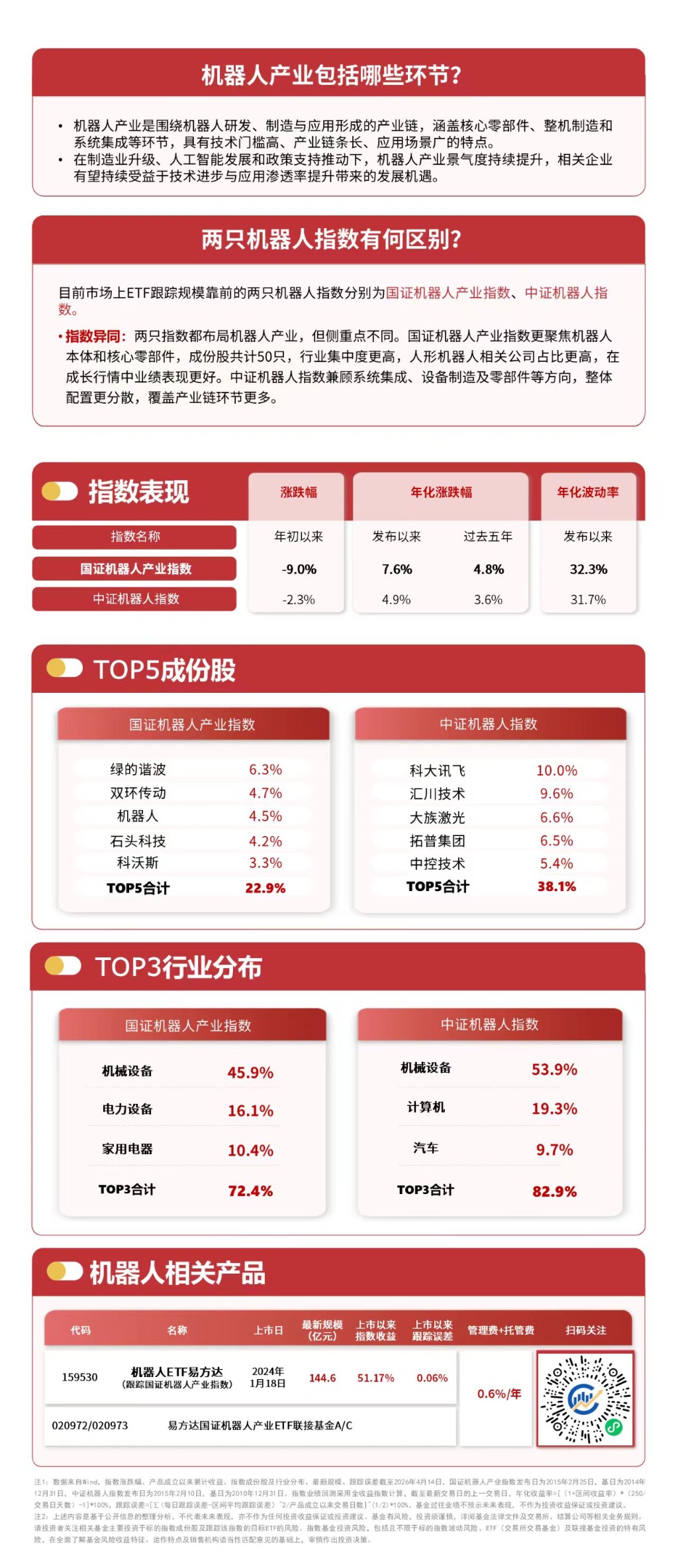 截至收盘,国证机器人产业指数下跌0.6%,机器人ETF易方达(159530,联接基金A/C:020972/020973)全天净申购达500万份。