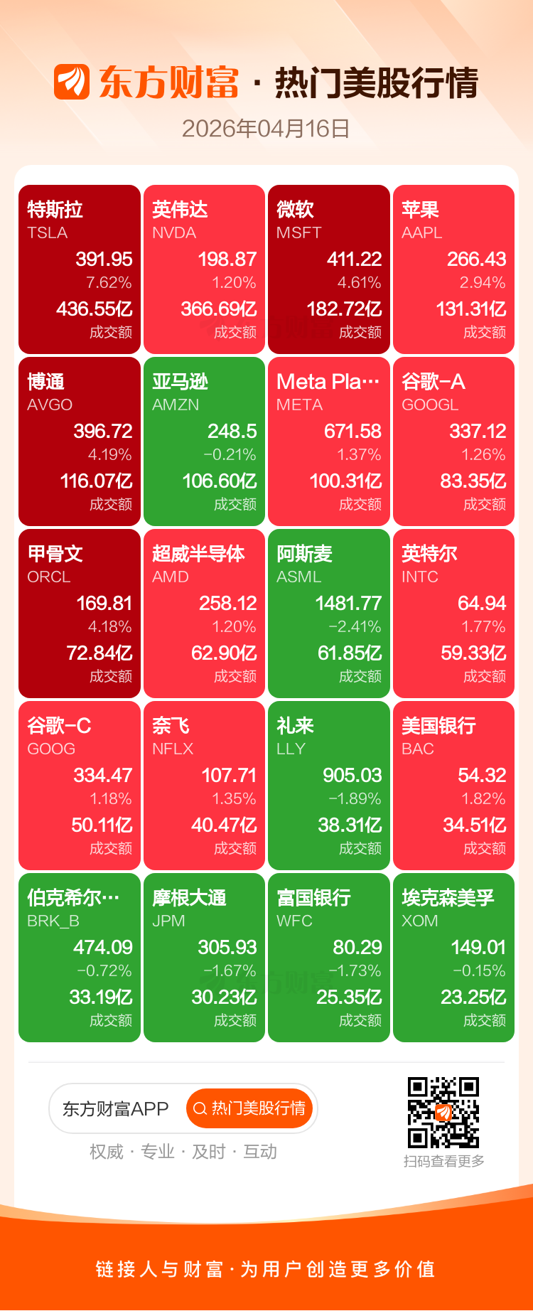 特斯拉涨7.62%,英伟达涨1.20%,微软涨4.61%,苹果涨2.94%,博通涨4.19%,亚马逊跌0.21%,Meta Platforms Inc-A涨1.37%,谷歌-A涨1.26%,甲骨文涨4.18%,超威半导体涨1.20%。