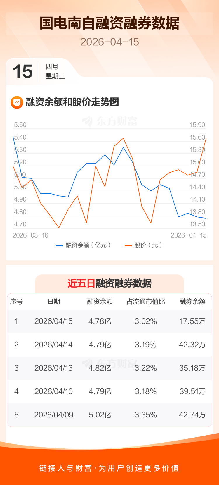 交易所最新数据显示,国电南自于2026年4月15日获融资买入8500.39万元,融资偿还8590.16万元,当日融资净偿还89.77万元。目前,该股融资余额4.78亿,占流通市值比例为3.02%。