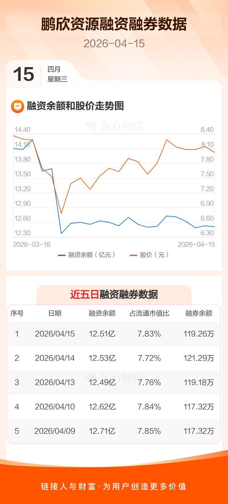 交易所最新数据显示,鹏欣资源于2026年4月15日获融资买入2859.25万元,融资偿还3038.11万元,当日融资净偿还178.86万元。目前,该股融资余额12.51亿,占流通市值比例为7.83%。