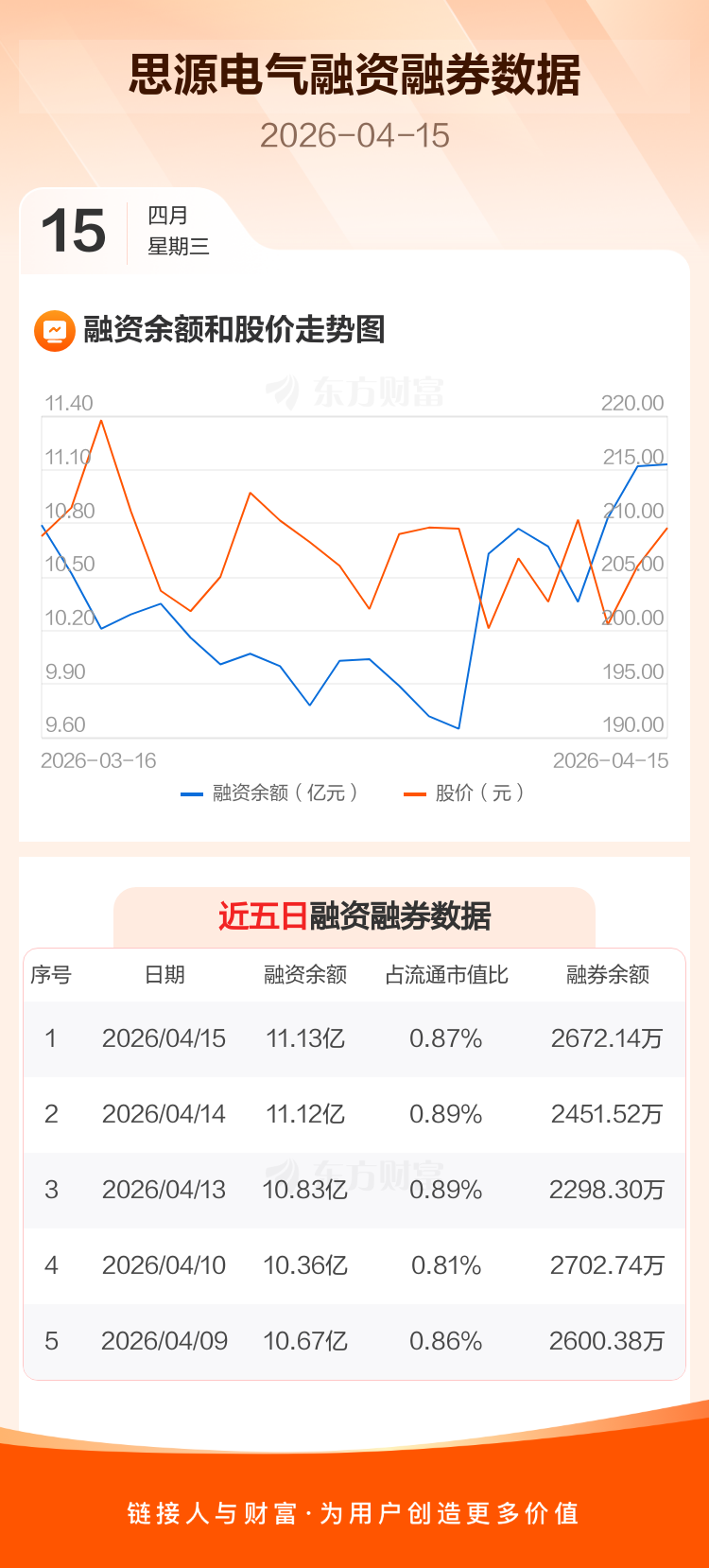 交易所最新数据显示,思源电气于2026年4月15日获融资买入1.34亿元,融资偿还1.33亿元,当日融资净买入94.78万元。目前,该股融资余额11.13亿,占流通市值比例为0.87%。