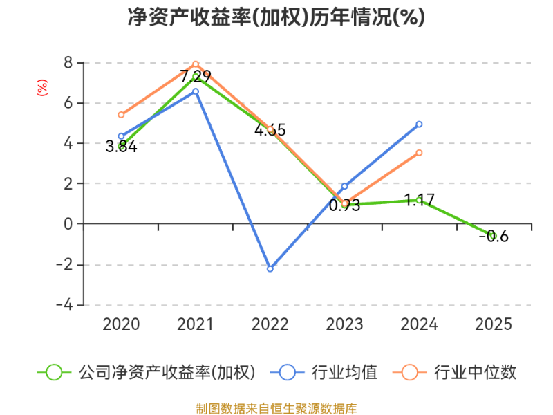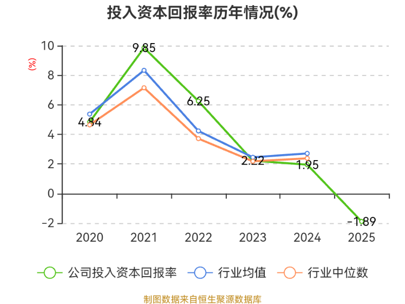 数据显示,2025年公司加权平均净资产收益率为-0.6%,较上年同期下降1.77个百分点。公司2025年投入资本回报率为-1.89%,较上年同期下降3.84个百分点。