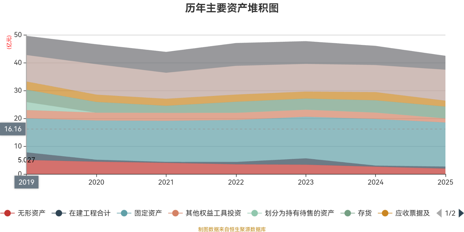资产重大变化方面,截至2025年末,公司货币资金较上年末增加14.39%,占公司总资产比重上升5.09个百分点;其他权益工具投资较上年末减少35.31%,占公司总资产比重下降1.49个百分点;应收票据及应收账款较上年末减少27.83%,占公司总资产比重下降1.38个百分点;无形资产较上年末减少26.61%,占公司总资产比重下降1.16个百分点。