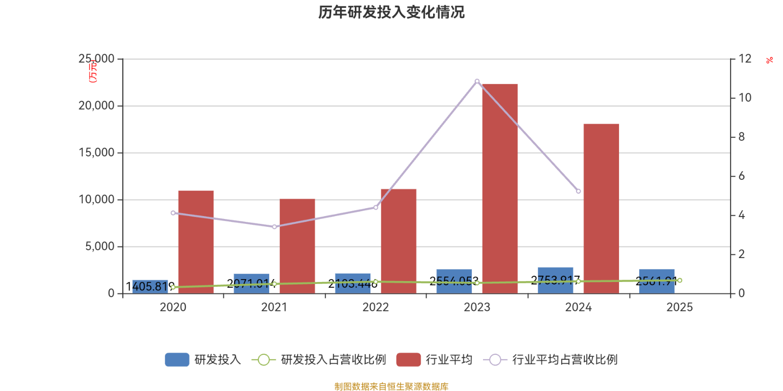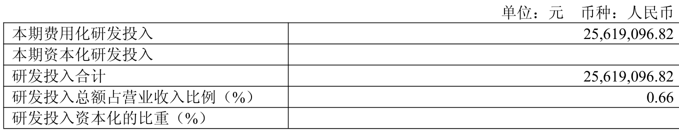 2025年全年,公司研发投入金额为2561.91万元,同比下降6.97%;研发投入占营业收入比例为0.66%,相比上年同期上升0.05个百分点。此外,公司全年研发投入资本化率为0%。