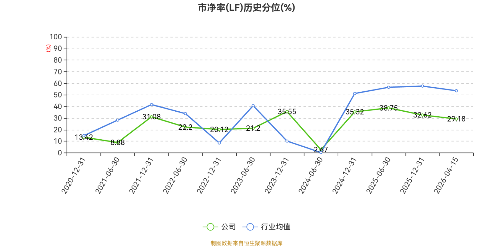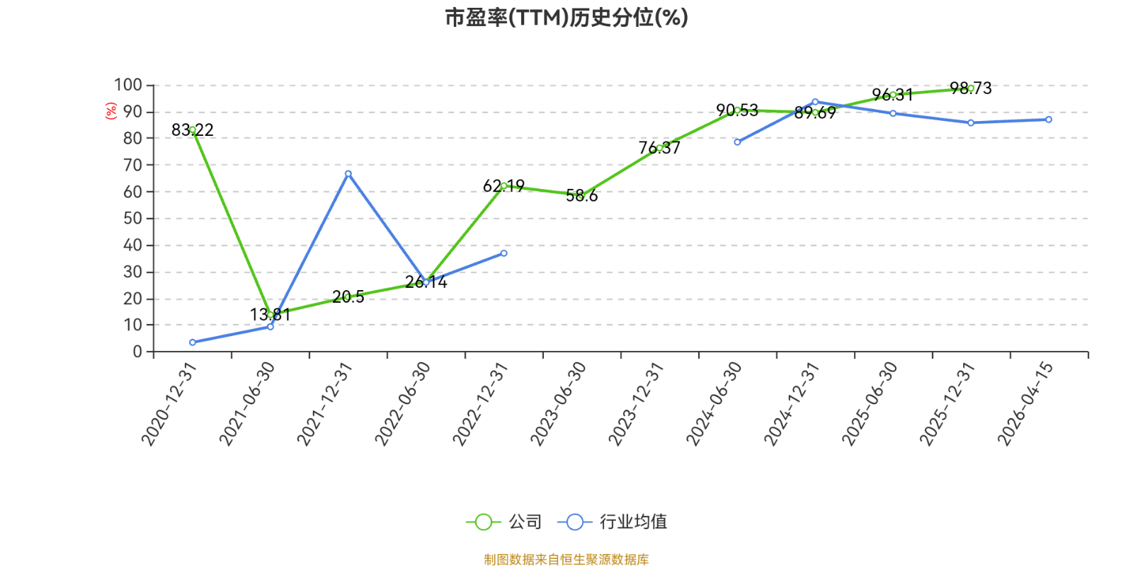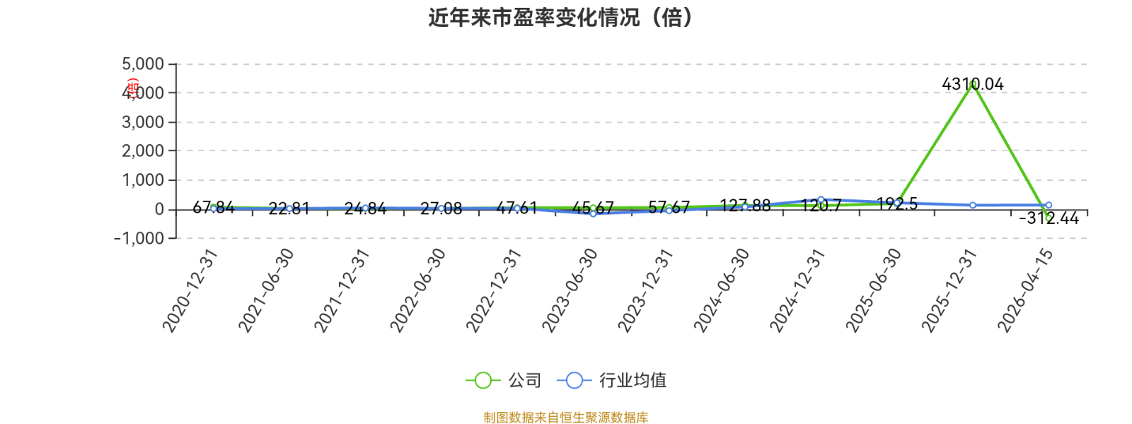 市盈率、市净率为负时,不显示当期分位数,会导致折线图中断。