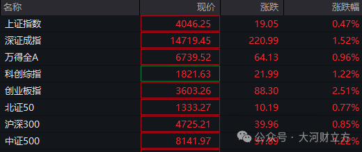 【大河财立方消息】4月16日,A股重要股指集体高开,截至11时,上证指数涨0.47%,深证成指涨1.52%,创业板指数涨2.51%,科创综指涨1.22%,全市场超3600个股飘红。