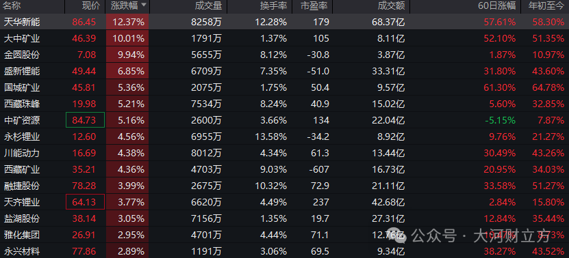 锂矿概念集体爆发。宁德时代的强势业绩表现,带动锂矿指数再度走高。Wind数据显示,截至发稿,锂矿指数涨超4%,金圆股份封涨停,盛新锂能打开涨停板,大中矿业4天2板创历史新高,天华新能涨超12%, 国城矿业 、融捷股份 、西藏珠峰 、盐湖股份、江特电机跟涨。