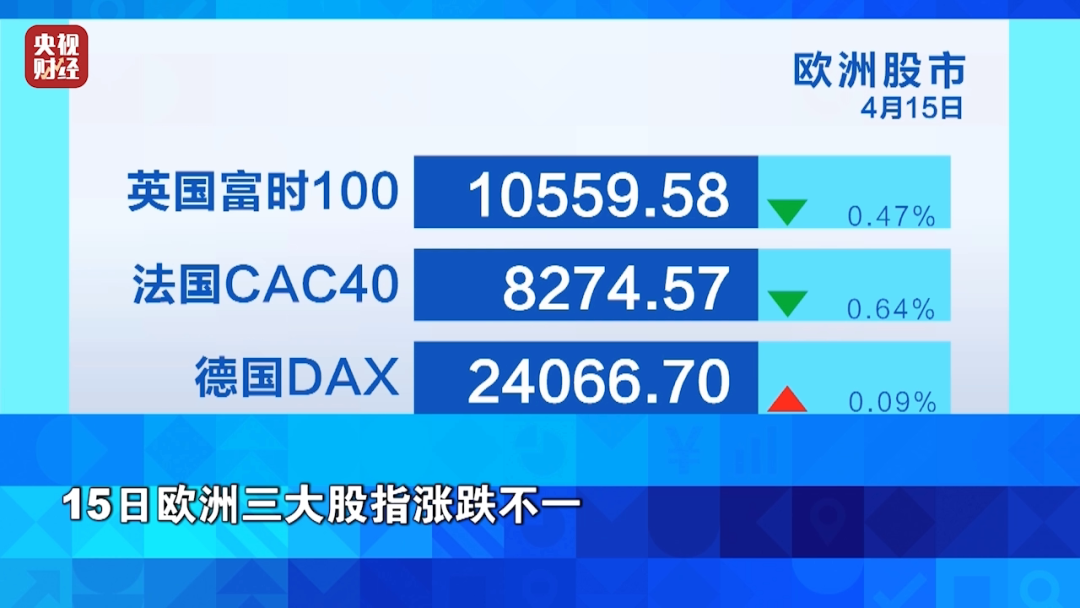 欧洲市场方面,三大股指当天涨跌不一,截至收盘,英国富时100指数下跌0.47%,法国CAC40指数下跌0.64%,德国DAX指数微涨0.09%。