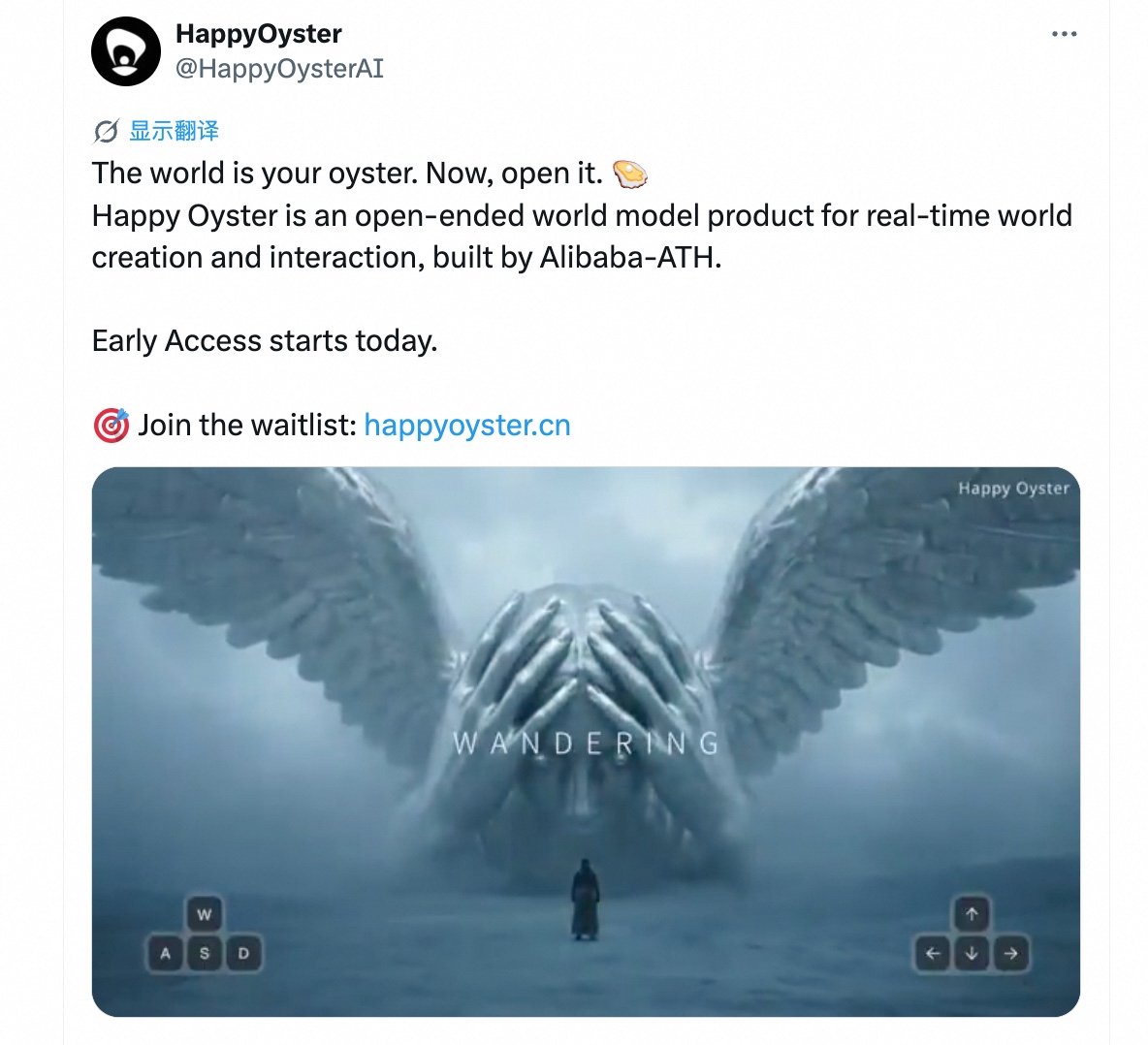 阿里ATH事业群发布世界模型产品Happy Oyster