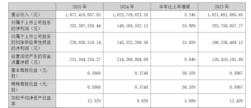 年报显示,侨源股份2025年实现营业收入10.77亿元,同比增长5.24%;实现归属于上市公司股东的净利润2.32亿元,同比增长55.8%;基本每股收益0.58元。公司拟向全体股东每10股派发现金红利4.56元(含税)。