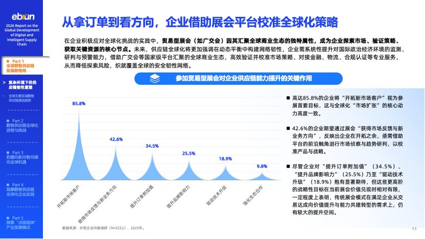 在这一背景下,亿邦智库受中国对外贸易中心集团有限公司委托,基于外贸企业一手调研与行业典型实践的深入跟踪,编制并在广交会现场发布了《2026数智供应链全球化发展报告》,探讨在全球产业链加速重构、数智技术加速渗透进程中,中国供应链全球化的新趋势新机遇与新路径。