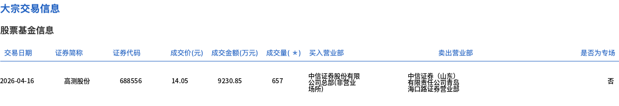 高测股份今日大宗交易折价成交657万股,成交额9230.85万元
