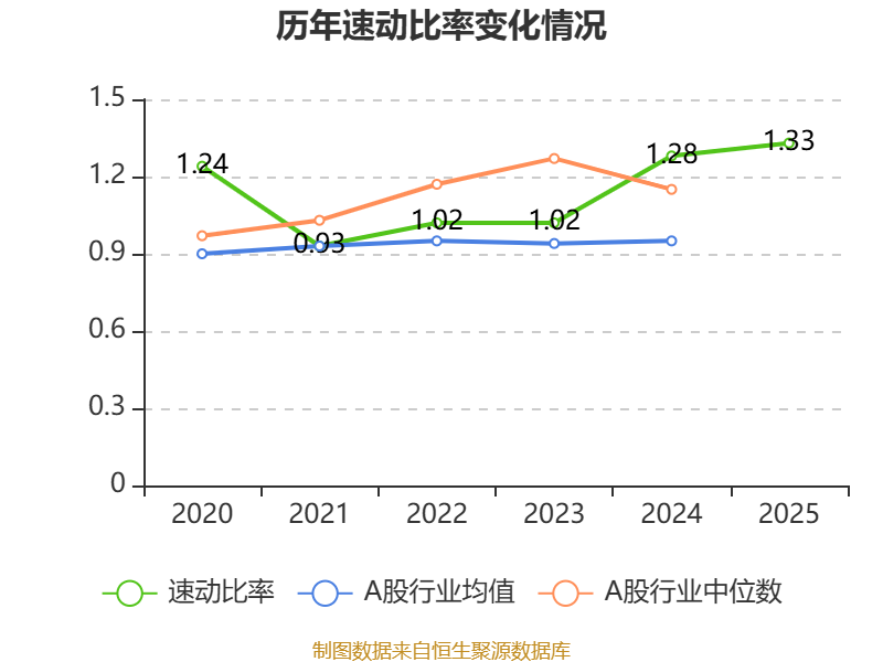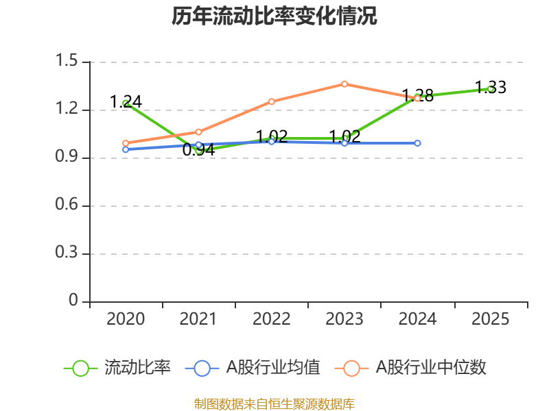 2025年,公司流动比率为1.33,速动比率为1.33。