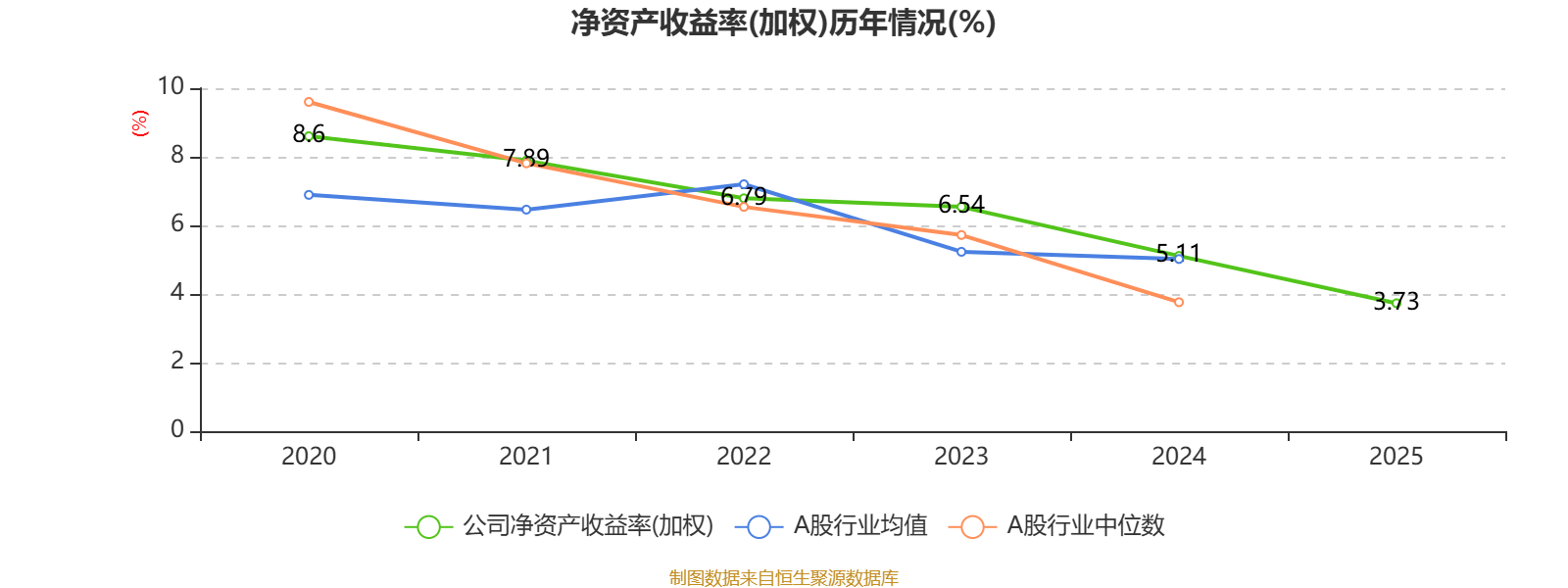 数据显示,2025年公司平均净资产收益率为3.73%,较上年同期下降1.38个百分点。