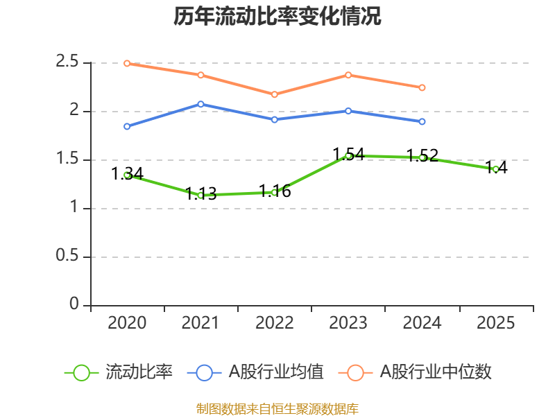 2025年,公司流动比率为1.40,速动比率为1.11。