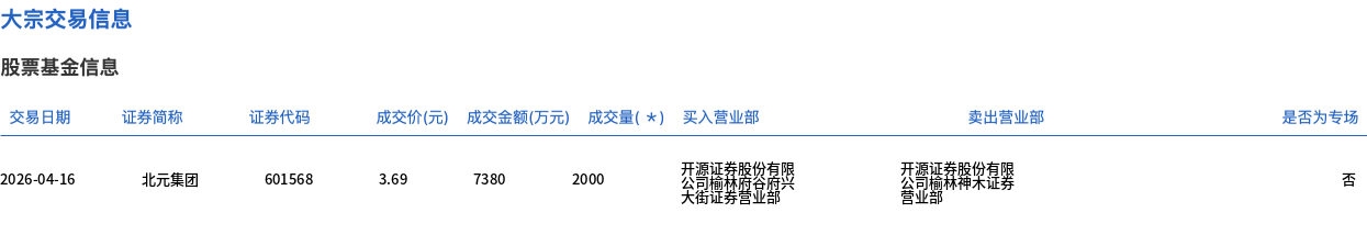 北元集团今日大宗交易折价成交2000万股,成交额7380万元