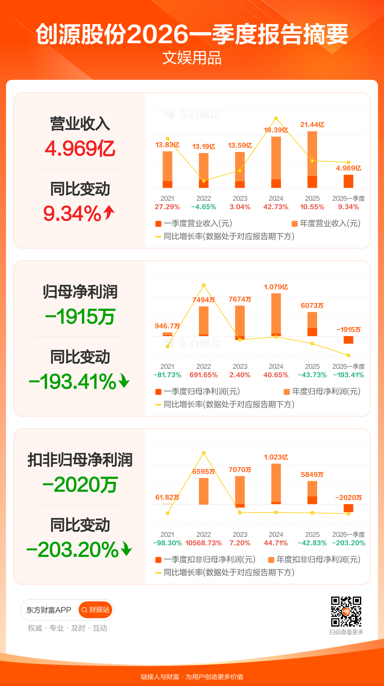 图解财报:创源股份一季度归母净利润-1915.30万元,上年同期2050.42万元