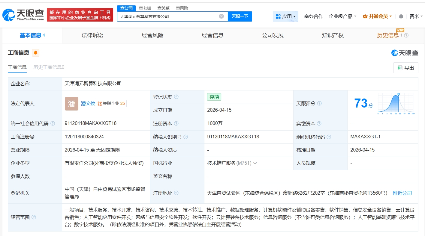 协创数据在天津成立智算科技公司