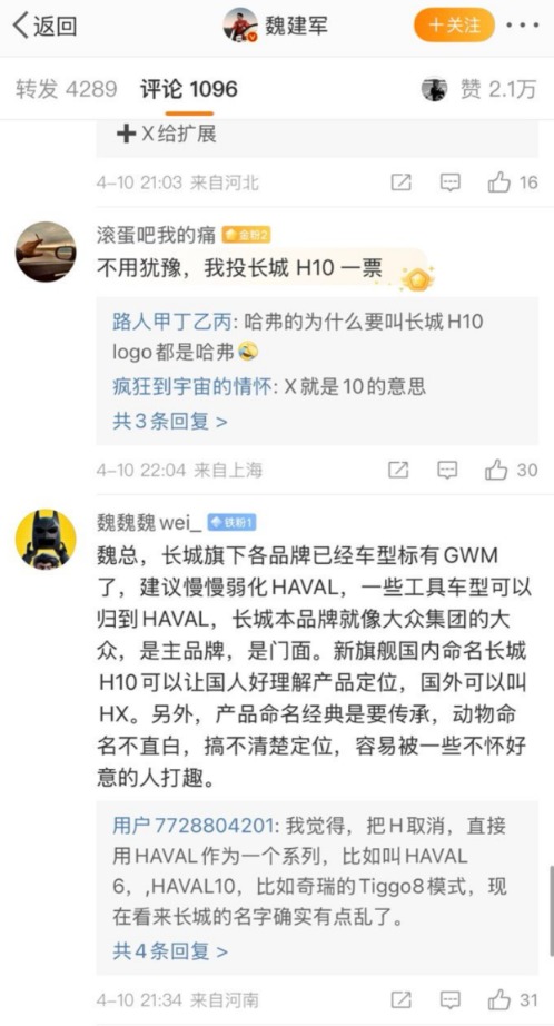外部用户纠结于命名延续性与情感归属,内部也出现不同声音。对哈弗体系而言,H10这个名字天然带有“旗舰”、“顶级”的序列含义,被视作哈弗品牌向上的重要符号。如今这款旗舰车型定名“长城H10”,不少人直观感受便是:哈弗失去了一个本该属于自己的旗舰名号。内外双重疑惑叠加,让这场命名事件从简单的营销活动,似乎变成了关乎品牌格局的焦点话题。
