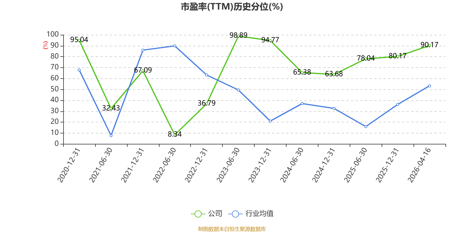 市盈率、市净率为负时,不显示当期分位数,会导致折线图中断。