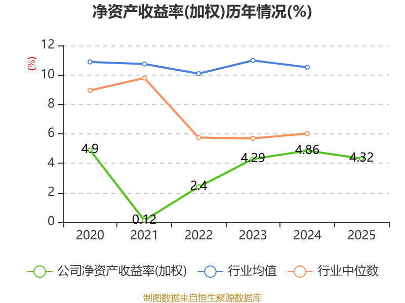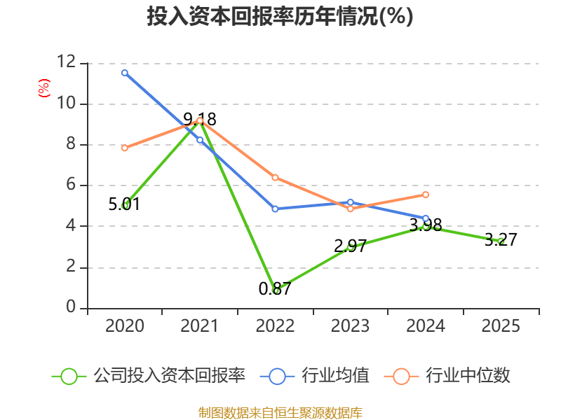 数据显示,2025年公司加权平均净资产收益率为4.32%,较上年同期下降0.54个百分点。公司2025年投入资本回报率为3.27%,较上年同期下降0.71个百分点。