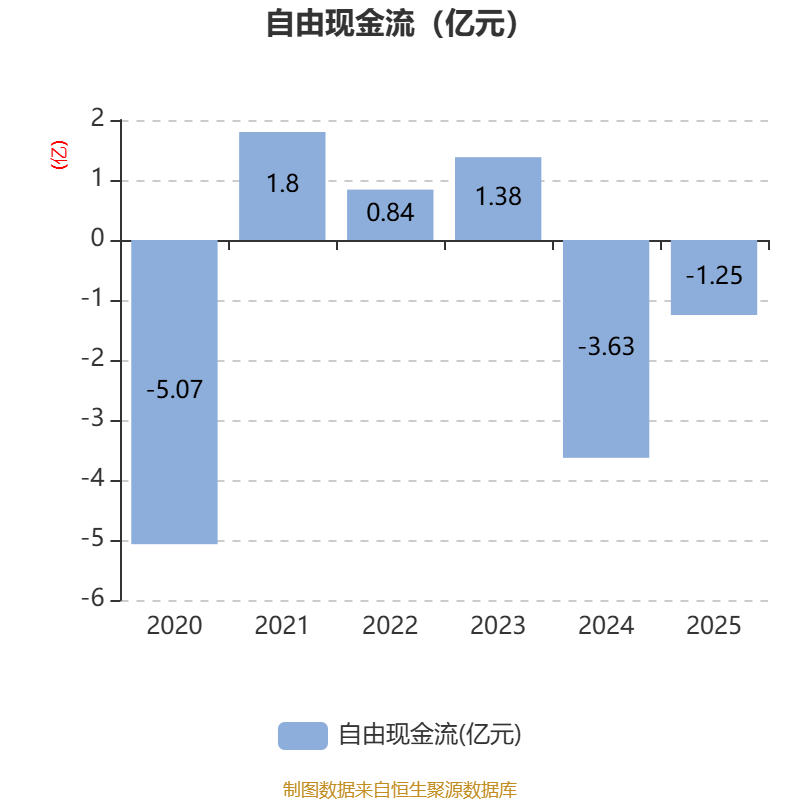 截至2025年,公司经营活动现金流净额为1.31亿元,同比下降56.66%;筹资活动现金流净额3101.59万元,同比减少6244.43万元;投资活动现金流净额-1.63亿元,上年同期为-7.87亿元。