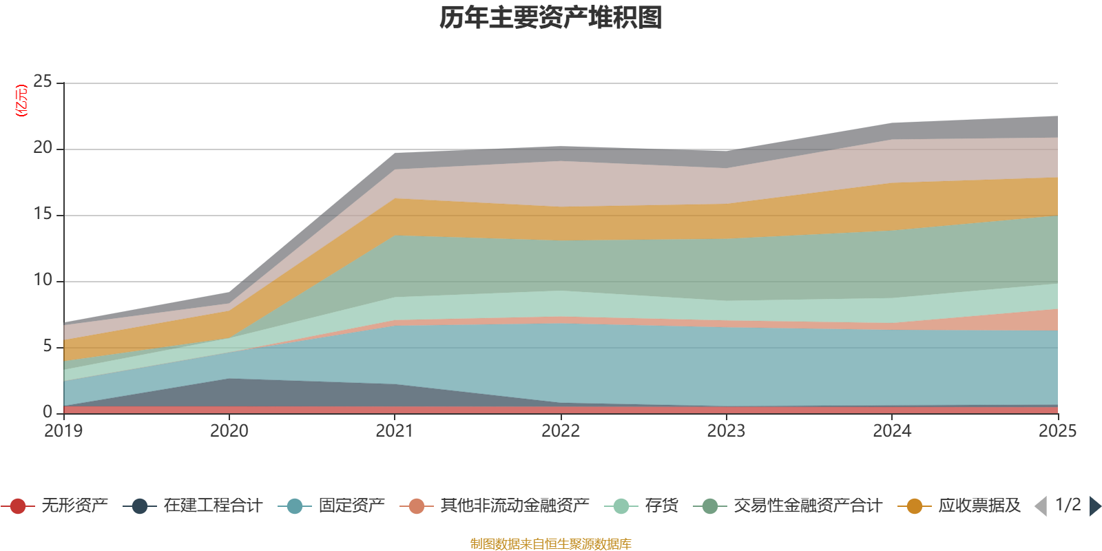 资产重大变化方面,截至2025年末,公司其他非流动金融资产较上年末增加208.56%,占公司总资产比重上升4.88个百分点;应收票据及应收账款较上年末减少19.69%,占公司总资产比重下降3.53个百分点;货币资金较上年末减少8.71%,占公司总资产比重下降1.62个百分点;其他应收款(含利息和股利)较上年末增加1178.17%,占公司总资产比重上升1.36个百分点。