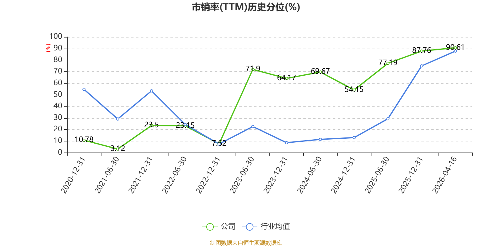 以4月16日收盘价计算,株冶集团目前市盈率(TTM)约为10.81倍,市净率(LF)约3.68倍,市销率(TTM)约0.88倍。