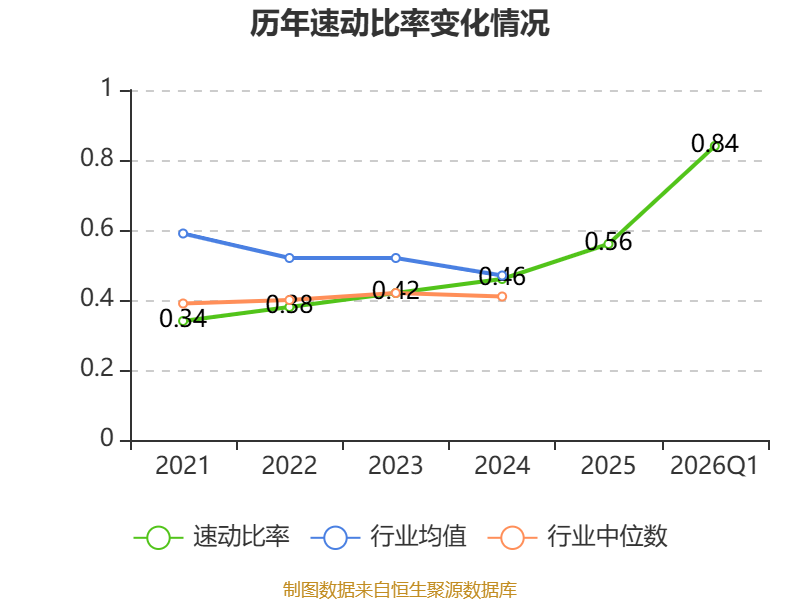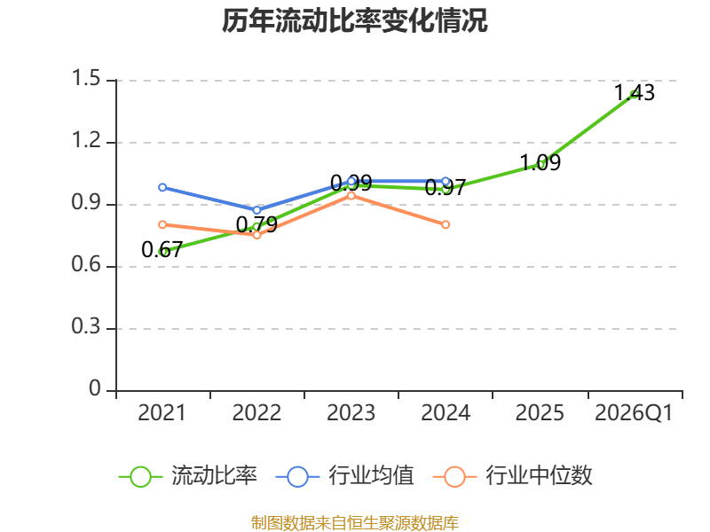 2026年第一季度,公司流动比率为1.43,速动比率为0.84。