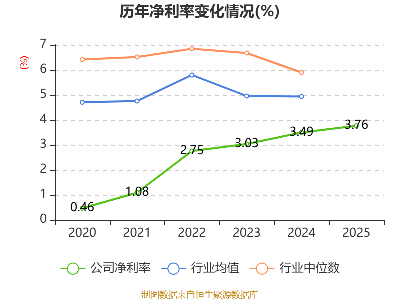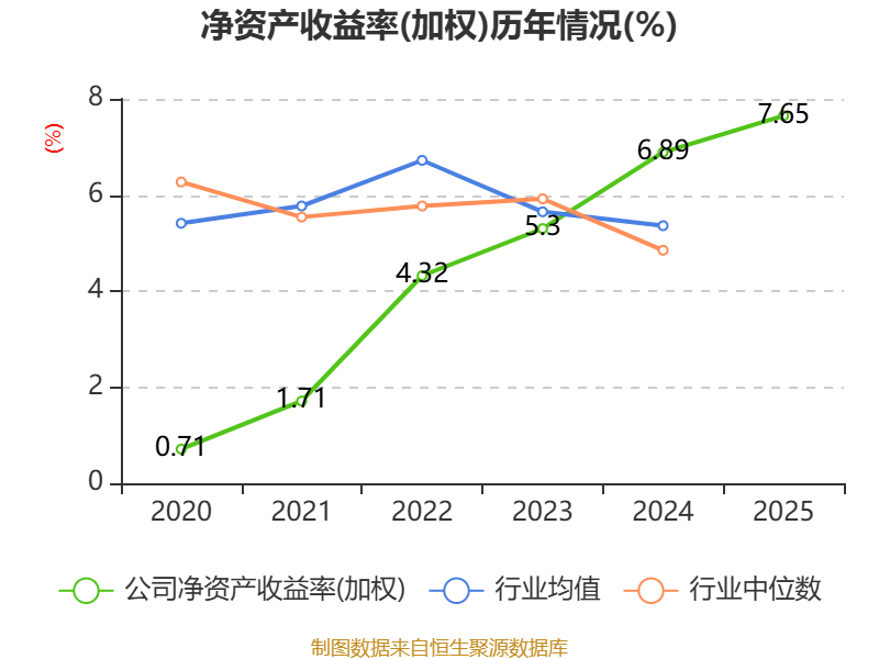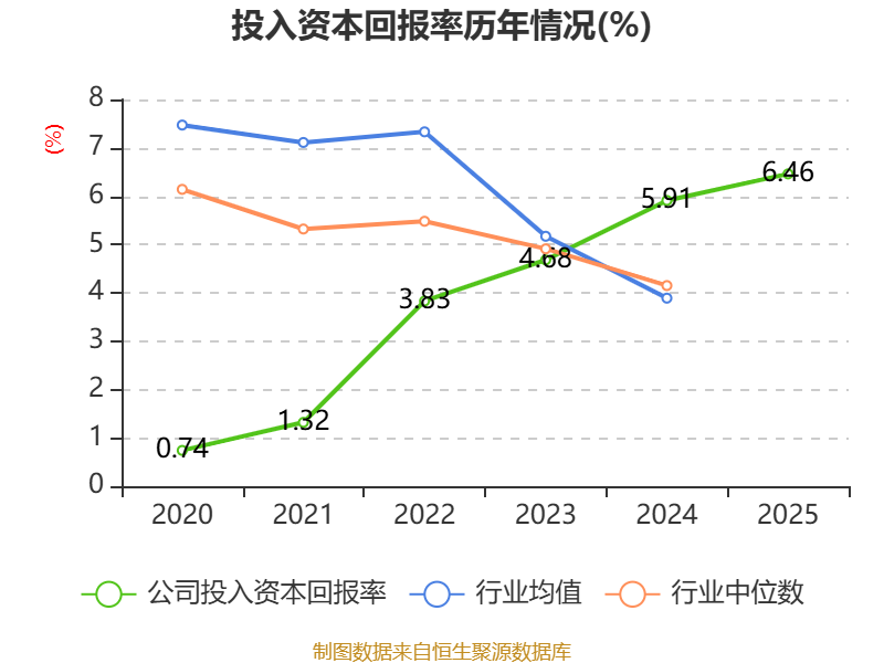 数据显示,2025年公司加权平均净资产收益率为7.65%,较上年同期上升0.76个百分点。公司2025年投入资本回报率为6.46%,较上年同期上升0.55个百分点。