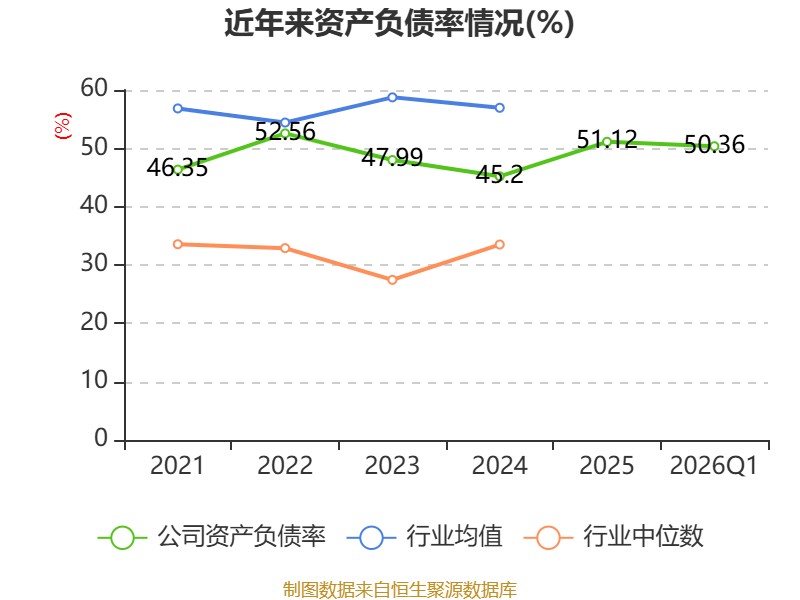 负债重大变化方面,截至2026年一季度末,公司应付票据及应付账款较上年末减少15.45%,占公司总资产比重下降2.61个百分点;长期借款较上年末增加19.48%,占公司总资产比重上升2.48个百分点;短期借款较上年末减少66.5%,占公司总资产比重下降1.56个百分点;应付职工薪酬较上年末增加9.28%,占公司总资产比重上升0.43个百分点。