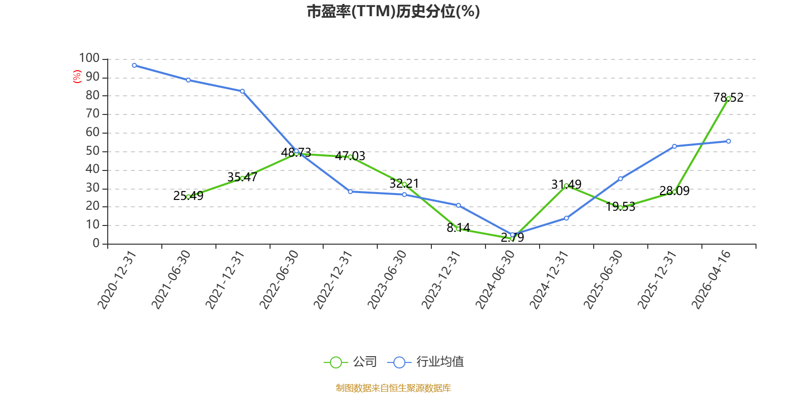 市盈率、市净率为负时,不显示当期分位数,会导致折线图中断。