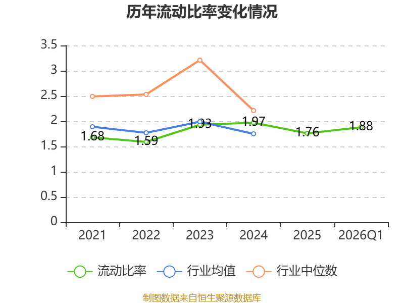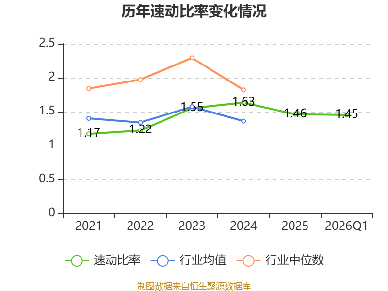 2026年第一季度,公司流动比率为1.88,速动比率为1.45。