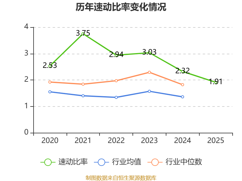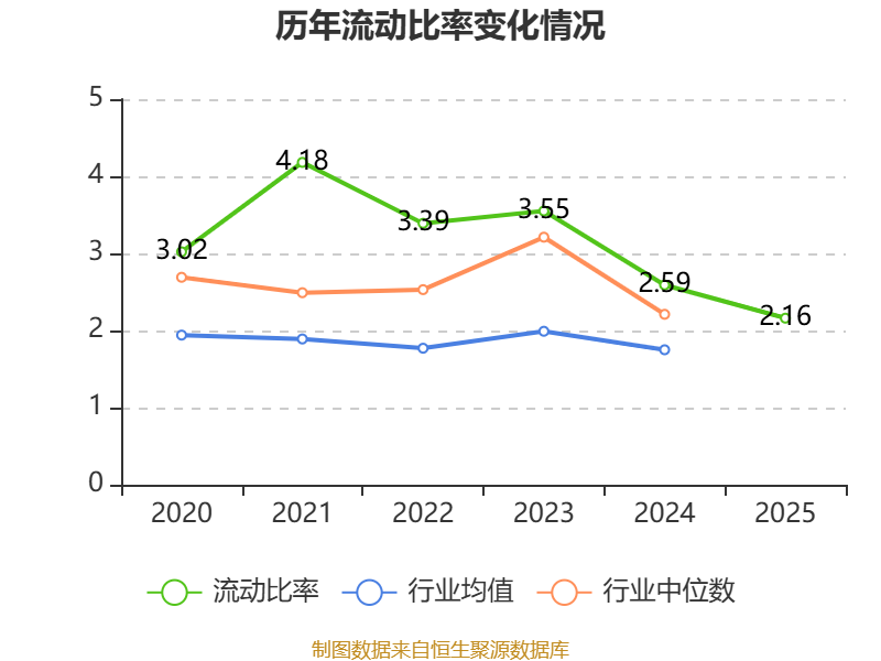2025年,公司流动比率为2.16,速动比率为1.91。