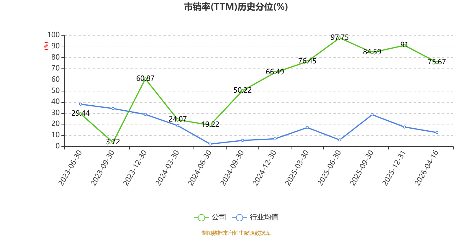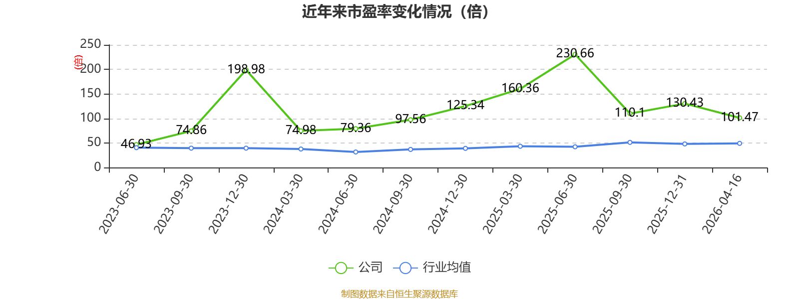 以4月16日收盘价计算,星辰科技目前市盈率(TTM)约为101.47倍,市净率(LF)约8.41倍,市销率(TTM)约17.4倍。