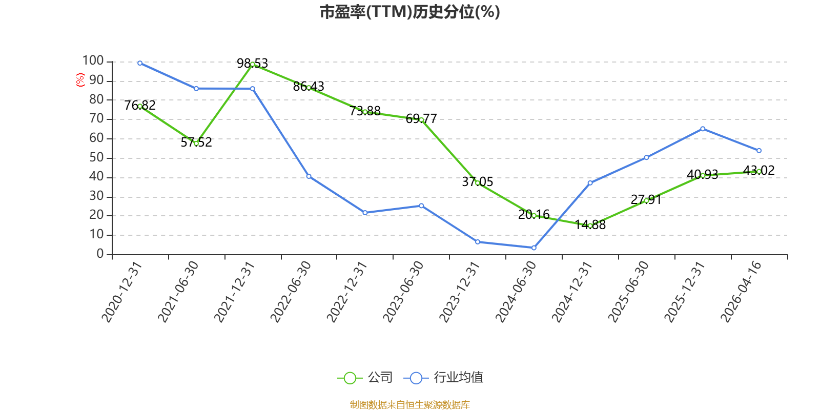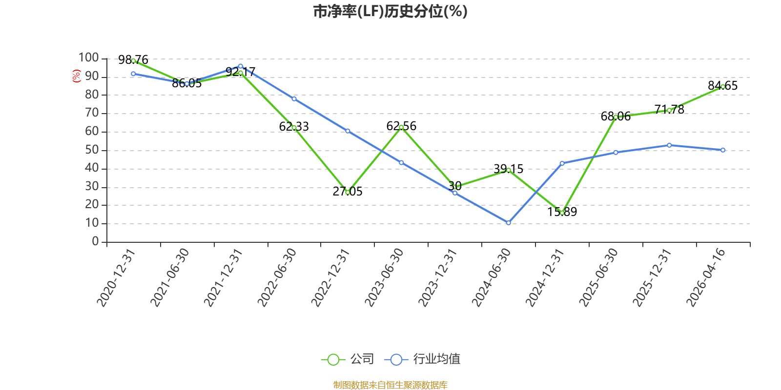 市盈率、市净率为负时,不显示当期分位数,会导致折线图中断。