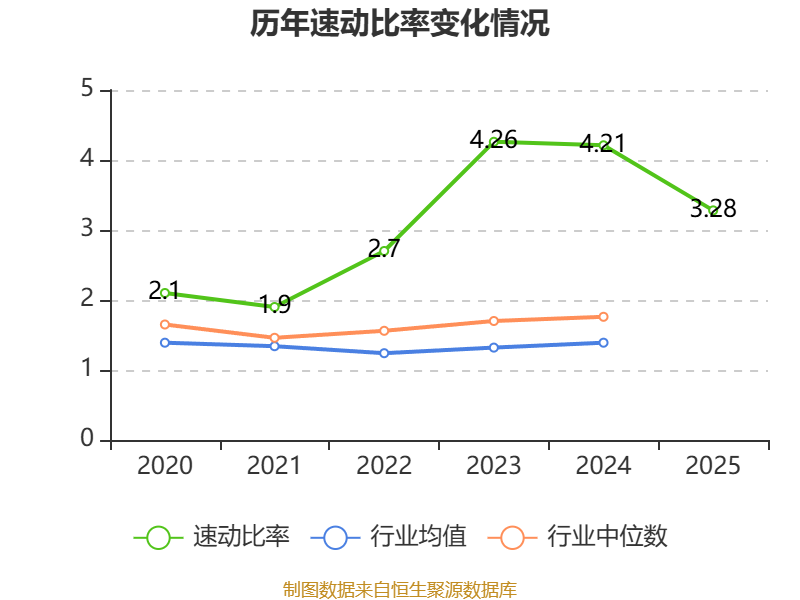 2025年,公司流动比率为4.47,速动比率为3.28。