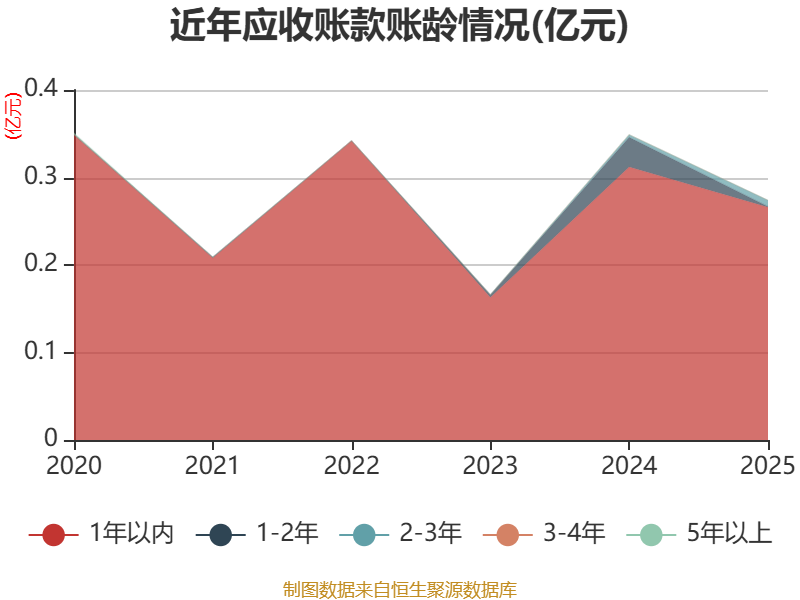 从应收账款账龄结构来看,截至2025年末,公司账龄在1年以内的应收账款余额为0.27亿元,较上年末下降461.09万元,占应收账款总额比例为97.09%,较上年末上升7.67个百分点。