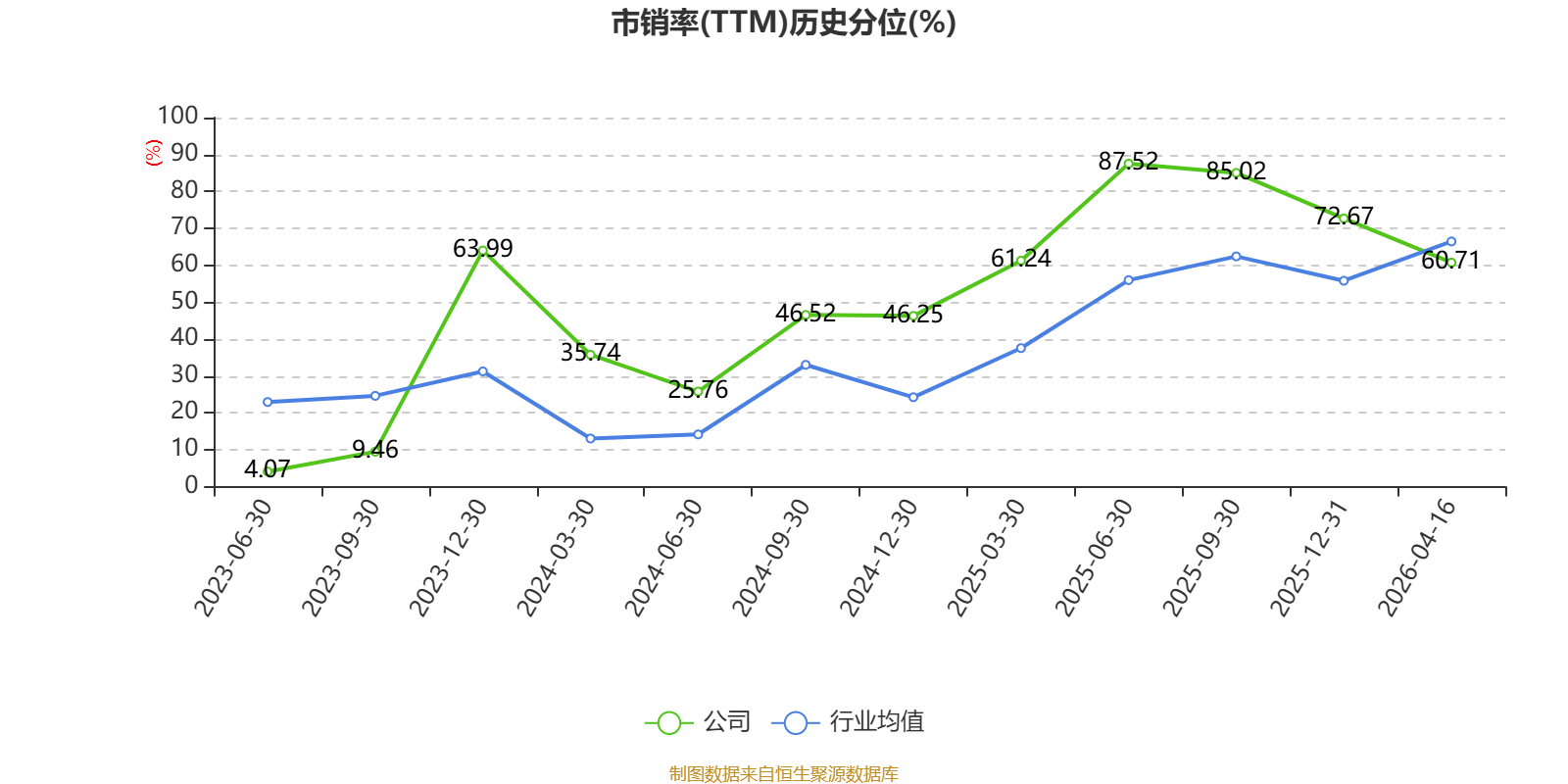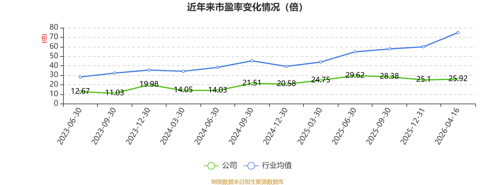 以4月16日收盘价计算,峆一药业目前市盈率(TTM)约为25.92倍,市净率(LF)约2.51倍,市销率(TTM)约4.52倍。