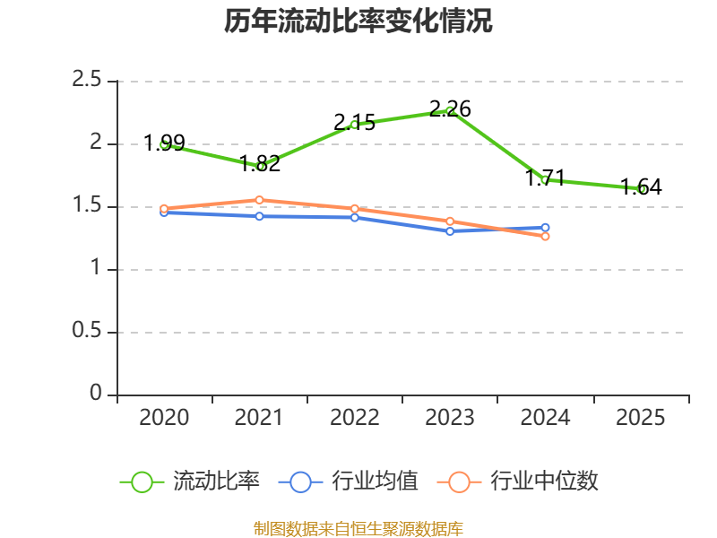 2025年,公司流动比率为1.64,速动比率为1.2。