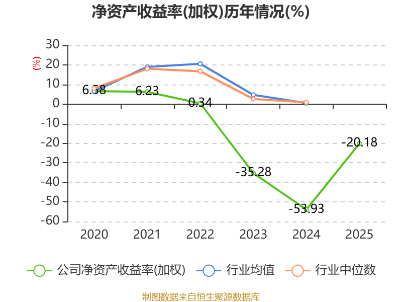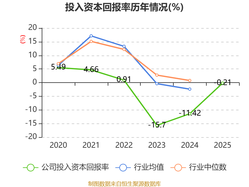 数据显示,2025年公司加权平均净资产收益率为-20.18%,较上年同期上升33.75个百分点。公司2025年投入资本回报率为-0.21%,较上年同期上升11.21个百分点。
