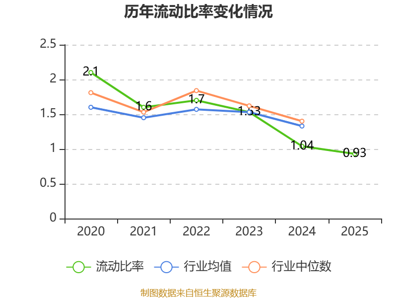 2025年,公司流动比率为0.93,速动比率为0.58。