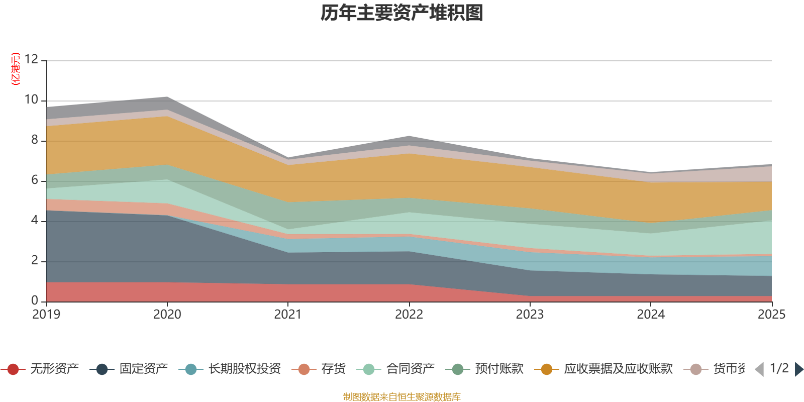 资产重大变化方面,截至2025年末,公司应收票据及应收账款较上期末减少29.84%,占公司总资产比重下降10.66个百分点;合同资产较上期末增加51%,占公司总资产比重上升7.21个百分点;货币资金较上期末增加72.6%,占公司总资产比重上升4.31个百分点;固定资产较上期末减少7.44%,占公司总资产比重下降2.17个百分点。
