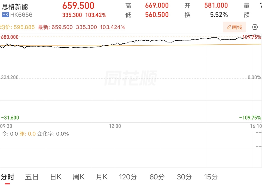 思格新能源首日收盘报659.5港元,来自同花顺。