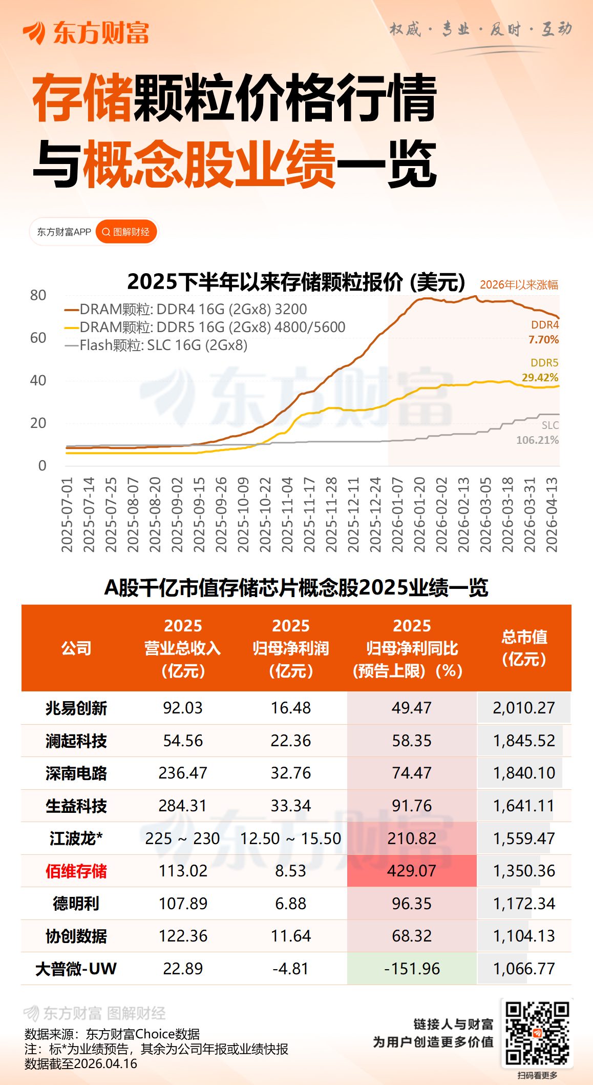 4月15日,佰维存储发布2026年第一季度财报,公司实现营收68.14亿元,同比大增341.53%;归母净利润28.99亿元,而去年同期为亏损1.97亿元,单季盈利已接近2025年全年利润的3.4倍。