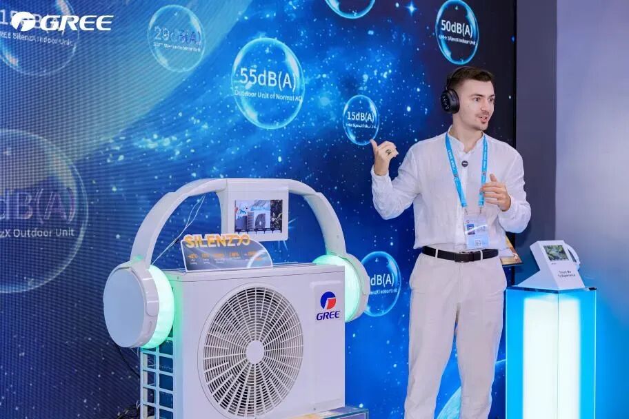 为让全球客商近距离感受格力科技的温度与魅力,格力展台还精心准备了趣味体验活动,将硬核技术与趣味体验融合,让科技变得可感、可触、可留念。“Hear GREE-静音悄悄话”体验区,把抽象的技术参数转化为真切的沉浸式体验,让客商直观感受到SilenzX系列静音空调的极致静音效果。
