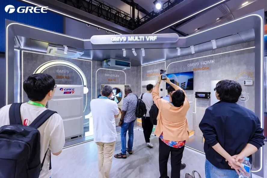 商用空调领域,格力GMV9系列四大机型重磅登场。旗舰GMV9可实现-35℃~60℃超宽温运行,轻松胜任全球大型地标建筑;GMV9 FLEX侧出风设计较传统上出风机型节省约44.6%安装空间,完美适配改造与狭小场景;GMV9 MINI采用新一代环保冷媒R32,精准切入高端住宅市场;GMV9 HOME创新整合夏季免费制取生活热水与地板冷媒直热功能,其综合能效达7.0,致力于为家庭用户提供集空调、地暖、热水于一体的综合舒适解决方案。